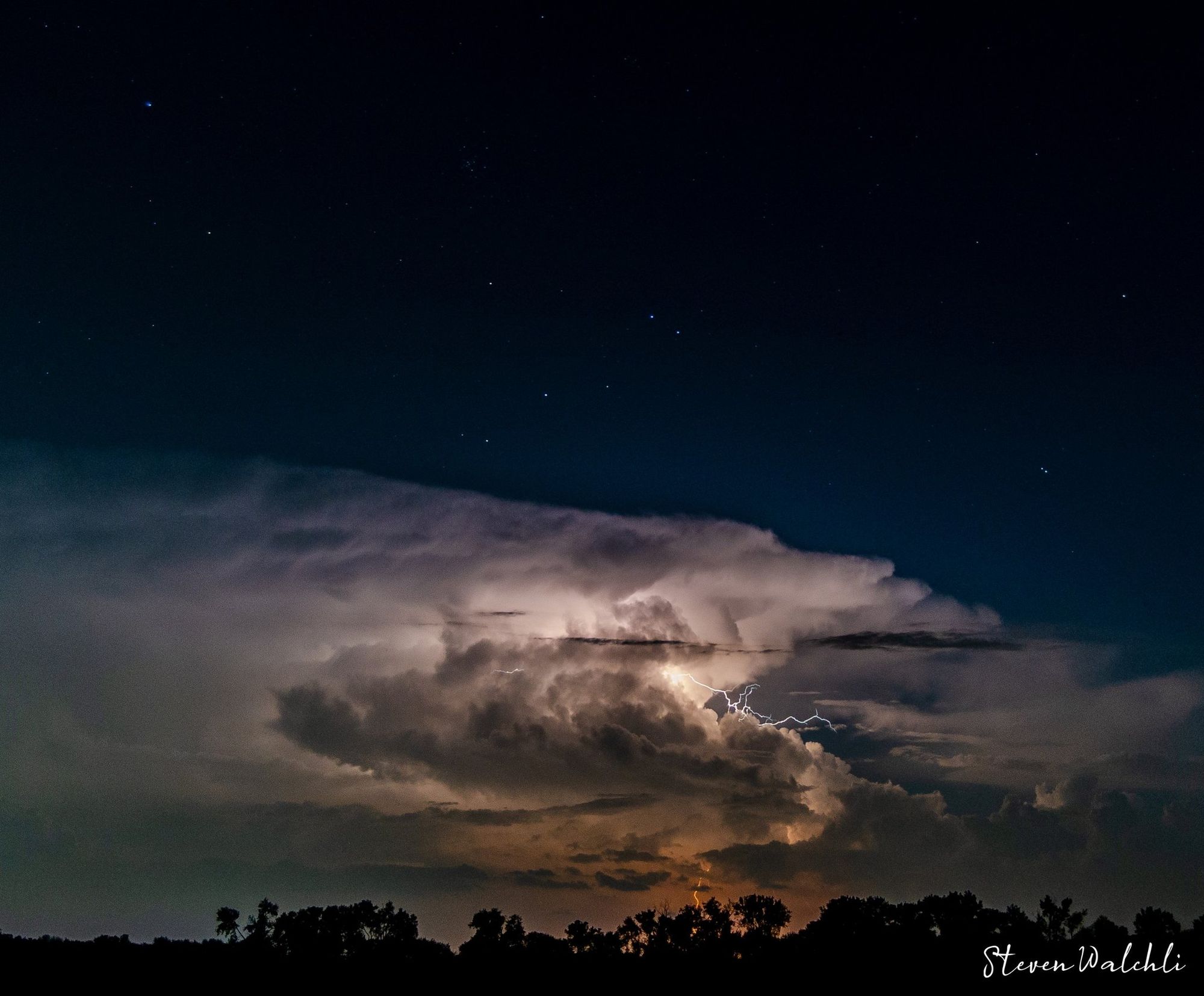 August 31st Lightning in a storm near St. Clair, Missouri with stars overhead by Steven Walchli @WxSteven_W