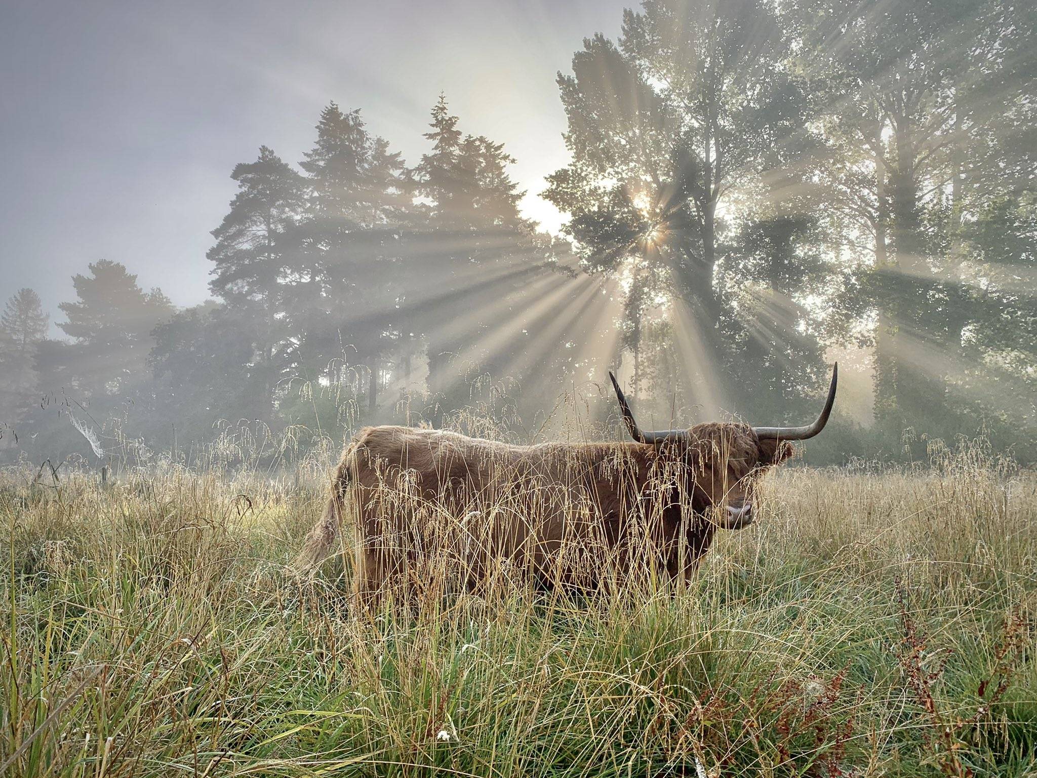 1st Place Highland cow grazing on dewy grass in Taverham, Norfolk by WalkingTractor @TractorWalking